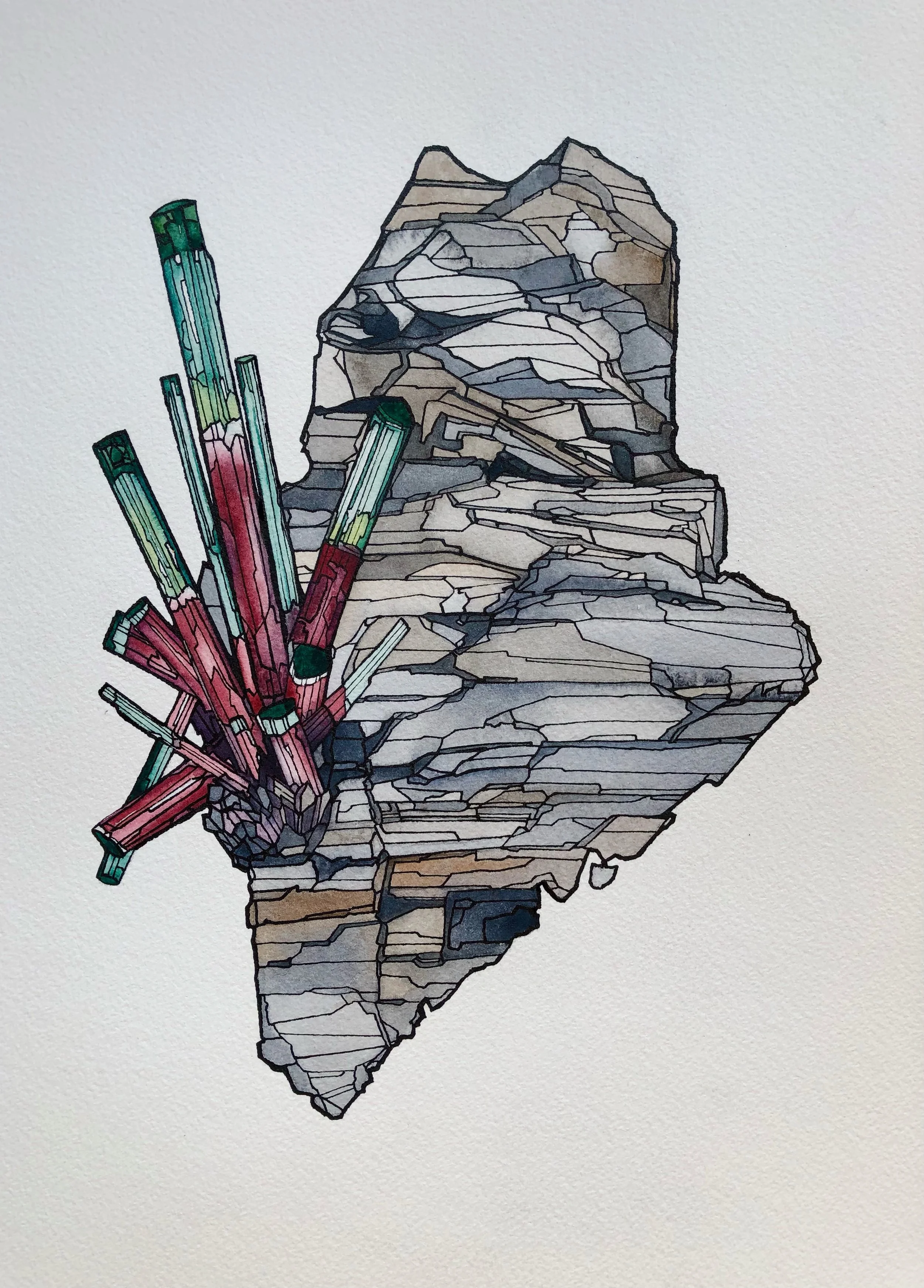 Maine continues to produce the absolute finest quality gem tourmaline with its clarity, brilliance, and richness beyond compare. Colors range from the rare Eureka Blue, the dazzling Sparhawk Mint Green Teal, and a spectacle of Apple Greens. As well as the highly coveted Watermelon and the greatest diversity of Pinks unveiled anywhere else. Rare and precious gems continue to be happened upon all through out the state, but it is clear the Western Mountains of Maine may hold the greatest treasures still waiting to be found.